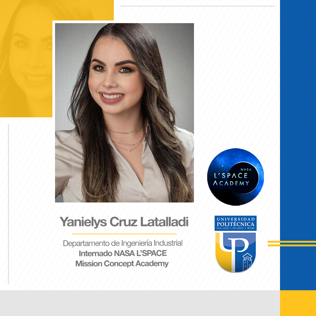 Felicitamos a nuestra estudiante de Ingeniería Industrial, Yanielys Cruz, por haber sido aceptada en el internado de NASA L’SPACE Mission Concept Academy.