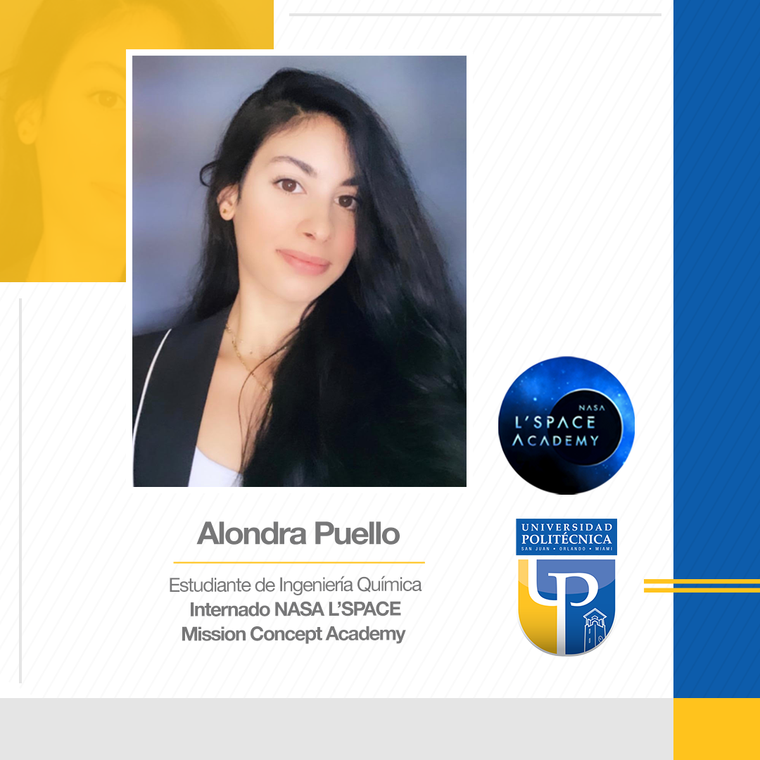 Felicitamos a nuestra estudiante de Ingeniería Química, Alondra Puello, por haber sido aceptada en el internado de NASA L’SPACE Mission Concept Academy.