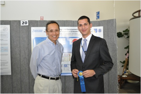 Bruno presented his work and results in the Summer Poster Symposium in LLNL held in August 7, 2013. The title of his poster was the “User Interface Design and Development of the Enhanced Radiological Nuclear Inspection Evaluation (ERNIE) Tool”. A hundred and fifty students participated in the poster presentation but only 15 students received awards for their presentation and contribution to the Laboratory. The awards were given to the top presentations of each area of research: Engineering, Global Security, Computation, Physics and the Director’s office.