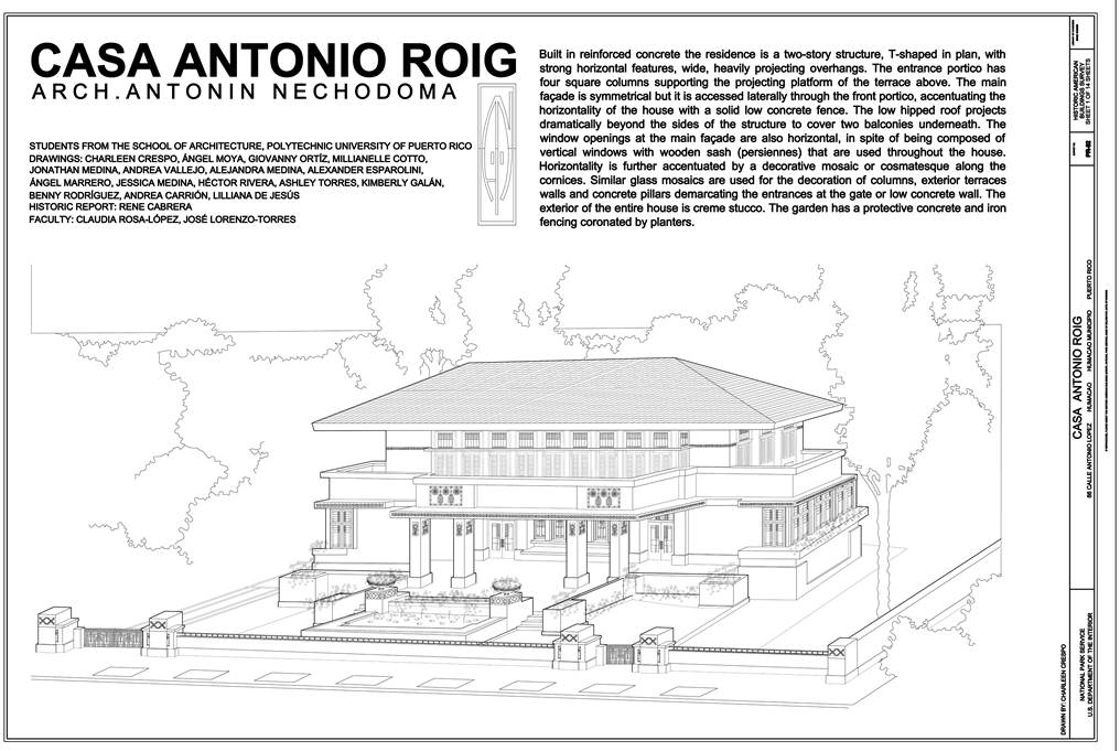 Estudiantes de la Escuela de Arquitectura de la Universidad Politécnica de Puerto Rico, ArqPoli obtuvieron el segundo lugar del distinguido premio Charles E. Peterson Prize 2016 Measured Drawing Student Competition. Este premio, organizado anualmente por la oficina del Heritage Documentation Program del National Park Service en Washington, DC., The Athenaeum of Philadelphia y el American Institute of Architects (AIA), reconoce los mejores dibujos a escala elaborados por estudiantes universitarios. Un equipo compuesto por diecisiete (17) estudiantes documentó la Casa Antonio Roig del Municipio de Humacao, Puerto Rico siguiendo las guías y estándares del Historical American Building Survey (HABS). Este año la actividad de premiación será parte del National Trust for Historic Preservation PAST | FORWARD Conference 2016 a celebrarse en San Antonio, Texas.